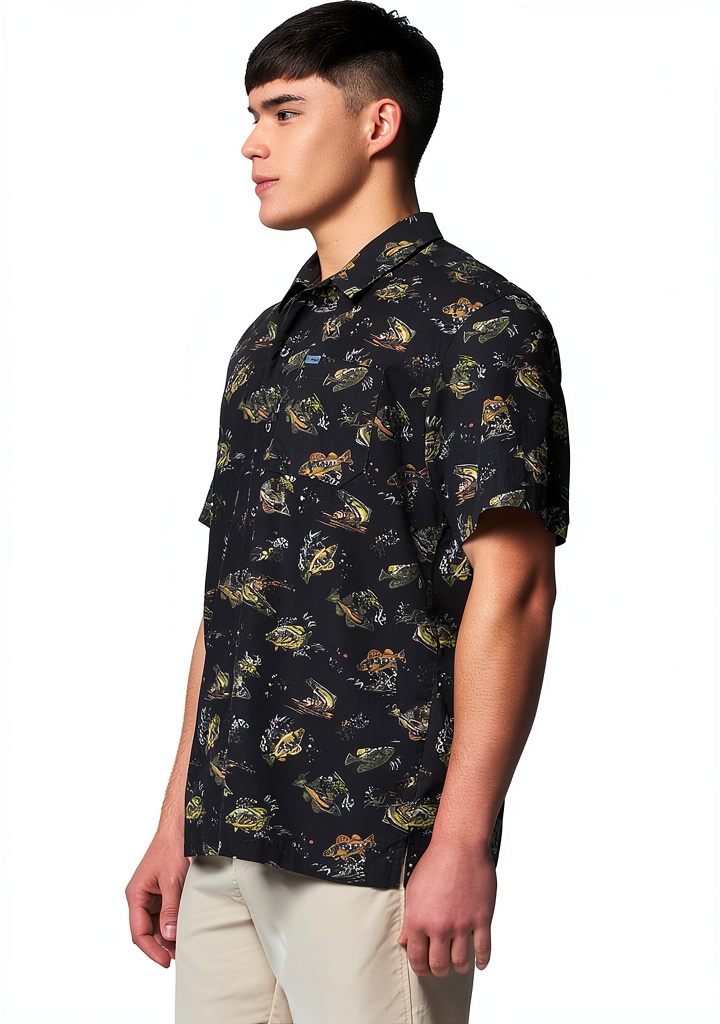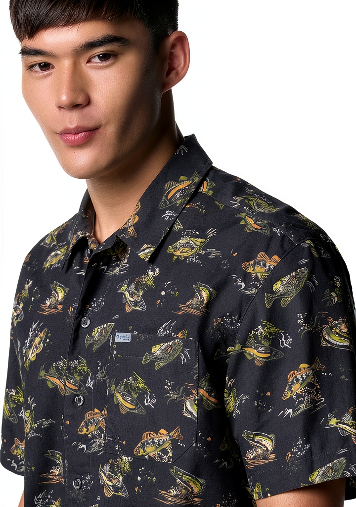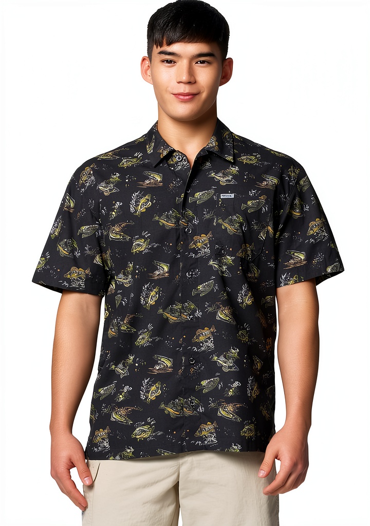 Sì, con stampe ispirate alla pesca e prese d’aria per la traspirazione, è ideale per attività all’aperto come la pesca, mantenendo il fresco.